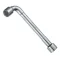 Aço especial. Acabamento niquelado e cromado. Chave maciça com dois lados sextavados internos de mesma medida, com grande profundidade para o encaixe do corpo do parafuso (parte roscada), sendo que o encaixe do lado menor possui um furo passante, permitindo a saída de parafusos com comprimentos maiores.