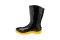 Bota de PVC (policloreto de polivinila) preta com solado amarelo da linha Vulcaflex, estilo galocha. Este calçado é impermeável e de fácil higienização, tem cano médio (25cm), tipo C, classificação II e garante a máxima impermeabilidade. A bota conta com solado antiderrapante, ideal para trabalhadores que atuam em áreas escorregadias. Sua fabricação é 100% vegana.