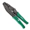 Possuí botão de ajuste de pressão com seis níveis. Aplicação: para prensar terminais RG (RG 58, 59, 60) Área de crimpar: aço Níquel-Cromo-Molibdênio para maior durabilidade e resistência. Cabo: plástico em fibra de vidro e nylon; Corpo: aço carbono.