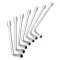 Jogo de Chaves de Biela possui 7 peças feitas em aço gedore-vanádio com acabamento niquelado e cromado, proporcionando resistência e durabilidade. Modelo longo e cabeça de perfil cônico com paredes finas. As chaves possuem perfil sextavado interno, com dois lados sextavados de mesma medida.